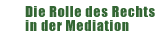 Das Recht hat in der Mediation eine andere Rolle. Die von ihm entworfenen Lösungen können Anregungen für die eigenen Vorstellungen geben. Das Recht setzt nur an wenigen Stellen der freien Entscheidung feste Grenzen. Außerdem sind bei der Abschlussvereinbarung Formvorschriften zu beachten, damit sie rechtsgültig ist. Am Ende in der Mediation steht eine Vereinbarung, die zumeist die Rechtsfolgen von Trennung und Scheidung abschließend regelt. Oft sparen die Familien Kosten, indem sich nur eine Partei im Ehescheidungsverfahren anwaltlich vertreten lässt.